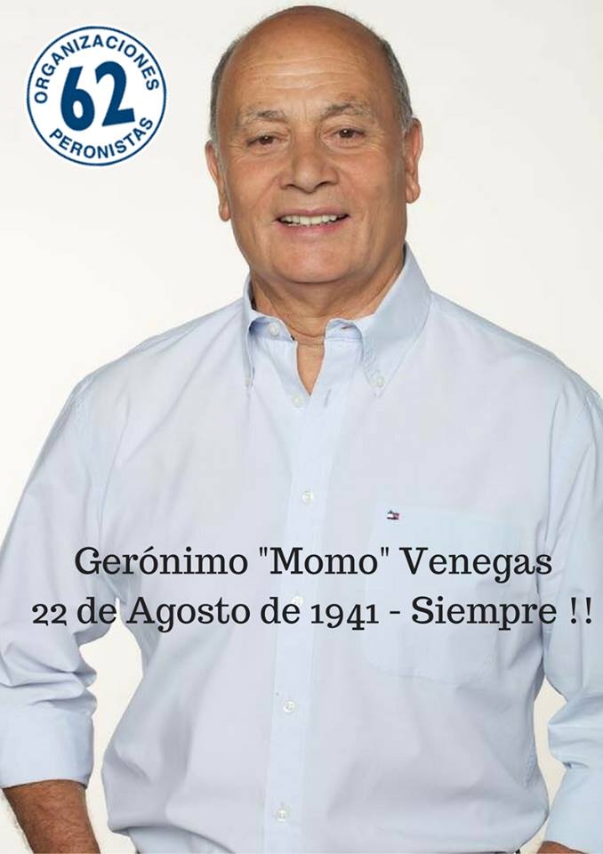 Venegas siempre se definió como un peronista de pura cepa. En su despacho lucen fotos y bustos de Perón. Una foto con el traslado del féretro del general ilustraba el fondo de pantalla de su computadora. Era el jefe de las 62 Organizaciones Peronistas, el brazo político que supo tener la CGT y que actualmente pensaba refundar para respaldar a Cambiemos.