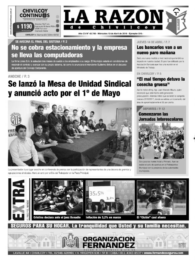 En la noche de ayer se presentó la Mesa de Unidad Sindical con la participación de una decena de sindicatos y agrupaciones gremiales de nuestra ciudad, a través de una conferencia de prensa que se realizó en la sede del sindicato molinero, en la cual se dio a conocer que la primera acción será la organización de un acto por el Día del Trabajador el 1º de Mayo en horas de la mañana.