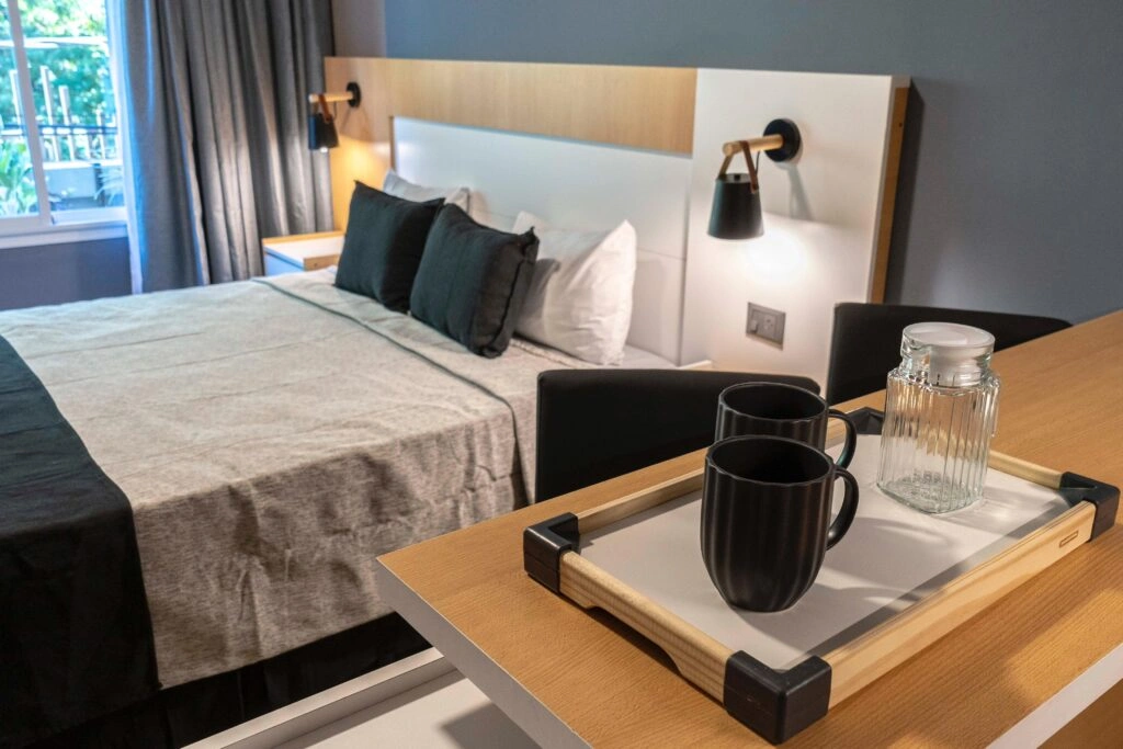 Cada unidad cuenta con aire acondicionado y TV de pantalla plana. Además, posee una zona de cocina equipada con microondas, minibar, cafetera, tostadora, pava eléctrica y una barra desayunadora, brindando mayor comodidad durante tu estancia.